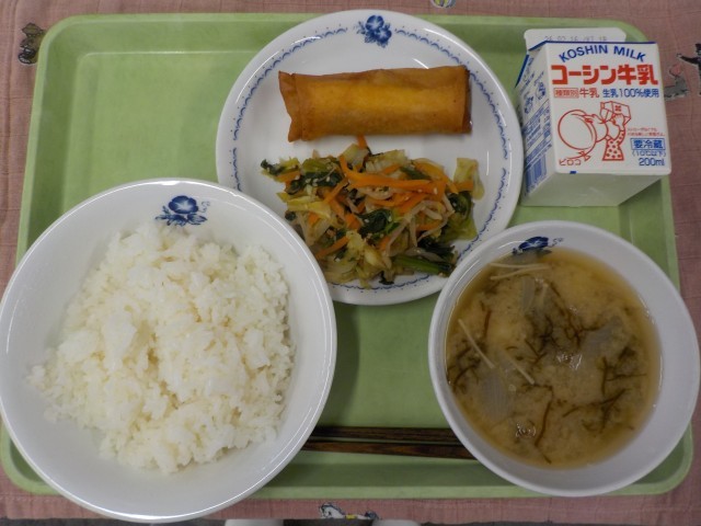今日の主菜の「魚の包み揚げ」は、調味料と生姜で下味をつけた白身魚を、チーズと一緒に春巻きの皮で包んで揚げた料理です。皮のパリパリの食感とチーズの味わいで、魚が苦手な人でも食べやすい料理です。ごはんによく合います。