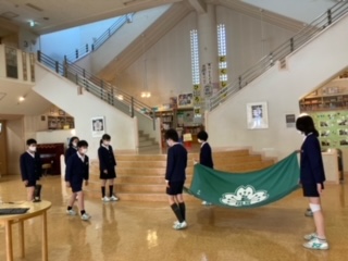 送る会の最後には6年生から校章旗を受け取り、6年生への気持ちを高めました。