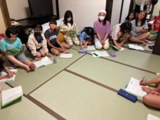 ふくべ細工体験が手際よくできたので、時間を早め、20時30分から班長会を行いました。