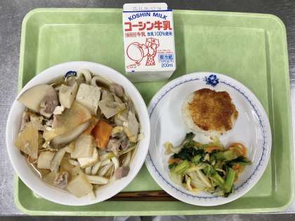 今日の主食は、とり肉と根菜がたっぷり入った「けんちんうどん」です。