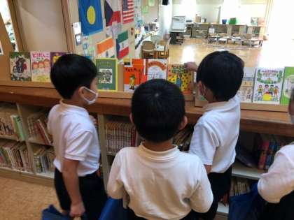 図書司書の先生に本の場所を尋ねたり、おすすめの本を紹介してもらったりと読書活動を楽しんでいます。