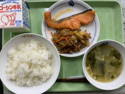 ★11/24(火) ごはん 鮭のバター醤油焼き 五目きんぴら 味噌汁