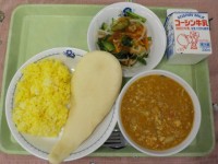 ごはん カミカミ佃煮 豚肉のしょうが焼き いそか和え みそ汁 牛乳