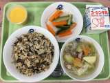 本日の献立は 焼き鳥丼 切干大根のハリハリ漬け 五目みそ汁 牛乳 ...