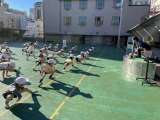体育では必ず準備運動があります。 2年生が学年で体育をするときには、音楽に合わせ...
