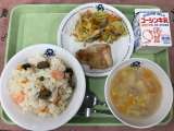本日の献立は きんぴらごはん 豆あじの唐揚げ 野菜のみそ炒め すまし汁 ...