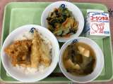 本日の献立は 天丼 野菜のおろしあえ 豆腐のみそ汁 牛乳 です。 ...