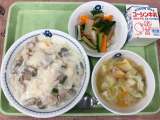《大分県の料理です》 本日の献立は とりめし とり天 だんご汁 牛乳 ...