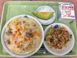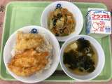 本日の献立は 天丼 野菜のおろしあえ すまし汁 牛乳 です。 ...