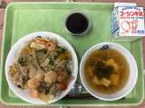 本日の献立は 夏野菜の中華丼 わかめスープ ぶどうゼリー 牛乳 ...