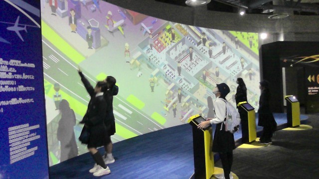航空科学博物館では、飛行機の歴史をじっくりと見学しました。旅客機の客室の展示では、エコノミークラスやビジネスクラスの座席に座り、旅行気分を味わう姿も見られました。