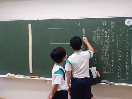 先週に引き続き伝記を読み進めました。場面ごとに読み取る中で、やなせさんがどんな思いや信念があったかを考えました。