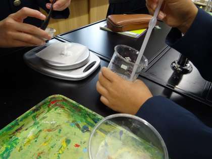 今日は、先週の実験に引き続き理科室で授業を行いました。水の中にどれだけの食塩、ミョウバンがとけるのかを実験しました。ものによって溶ける量が違うことが分かりました。溶けきれないものをどうすれば溶かすことができるのかを考え、「水の量を増やしたら・・・」など他の条件についても考えてみたいと声があがりました。そこで、すぐに新たな問題を決め、水の量を増やした実験にも取り組みました。理科の実験の楽しさを感じていました!