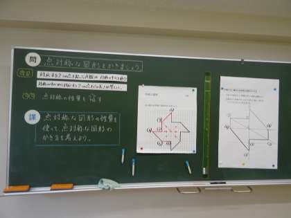 今日は、点対称な図形の性質を使って、作図を行いました。