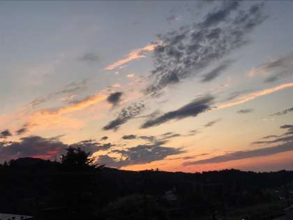 朝焼けが私たちを出迎えてくれました。さらに、トンボさんまでも…!東京都は違って心地よい空気に包まれていましたね!