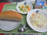 〈献立〉・牛乳 ・チーズコッペパン ・白菜のクリームシチュー ・キャロットソース...
