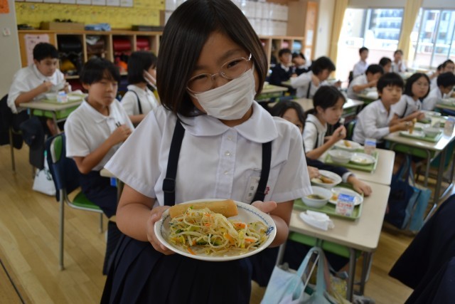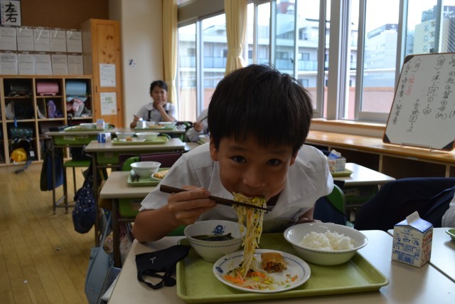 根岸小学校の安全で美味しい給食は、こういった方々の「見えないところ」での御尽力に支えられているのですね。そしてこの笑顔が生まれることになります。
