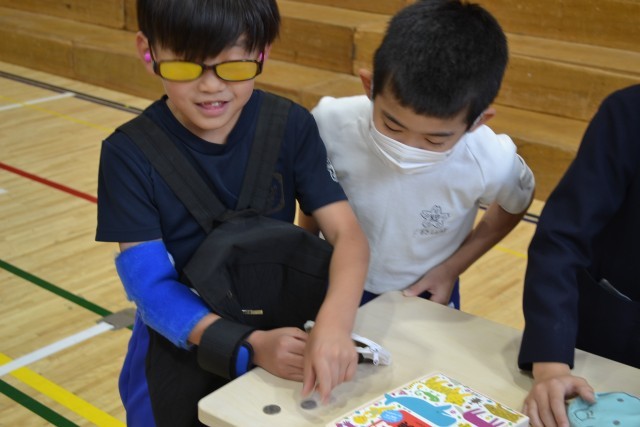 当日は、台東区から区議会議員の方や福祉課の職員の皆様、社会福祉協議会職員の皆様、そして長寿社会文化協会の皆様が御来校され、3年生の子供たちに体験を通して日常の生活の中で不便を感じられている方の不便さについての学びを与えてくださいました。