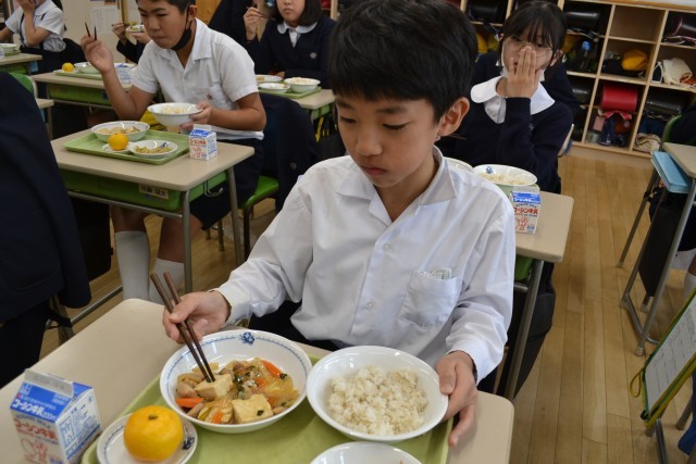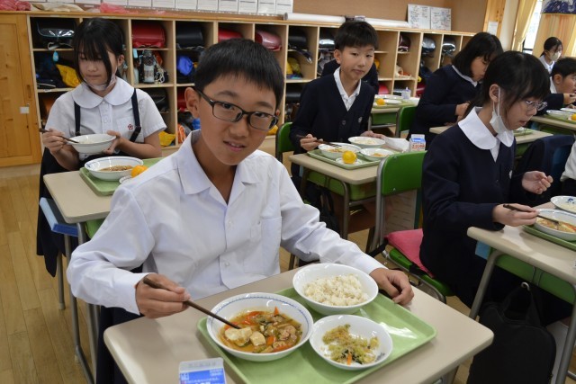 この学級ではこの後、研究授業が予定されています。子供も先生もいつも通りリラックスした状態で美味しい給食をいただいていました。