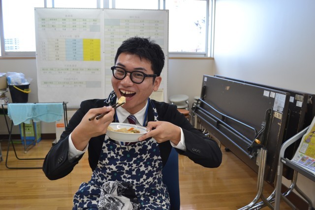 お箸を持たない方の手をできちんとお皿に添えてお豆腐を上手に切り分けている姿が多く見られました。