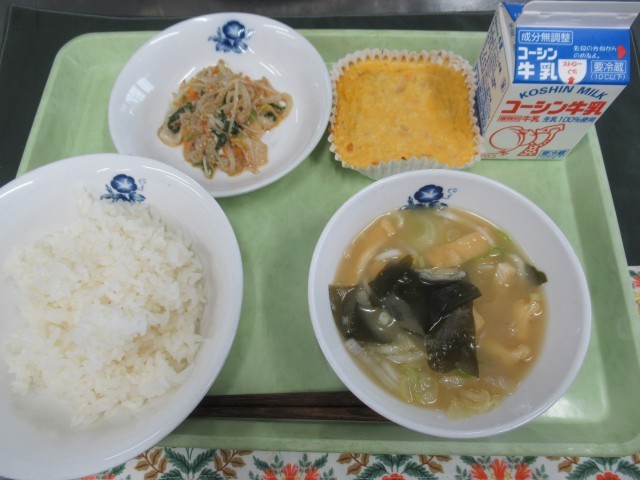 ・牛乳 ・ご飯 ・和風卵焼き ・もやしのごま和え ・玉ねぎと油揚げのみそ汁