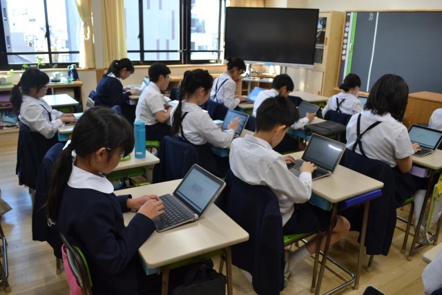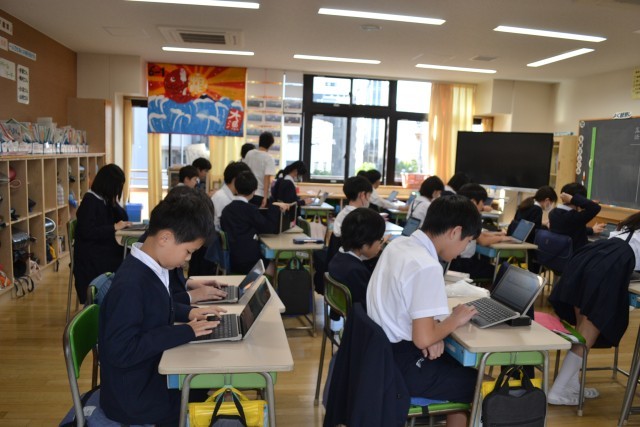 これをより日常的に活用することができるように、週に一回の清掃の時間を使ってICT学習の時間を設定しました(15分間)。これは、短時間の学習を積み重ねることにより発達段階に応じた情報活用能力や情報リテラシーを身に付けさせることをねらいとしています。