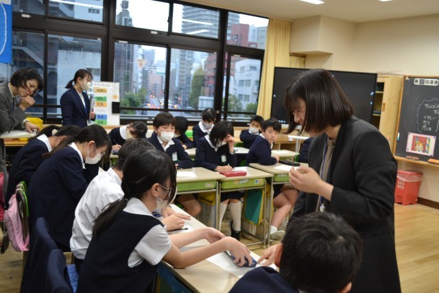 この日、他区から教職経験1年目から2年目の先生や中堅的な御立場にいらっしゃる先生が本校に御来校されました。