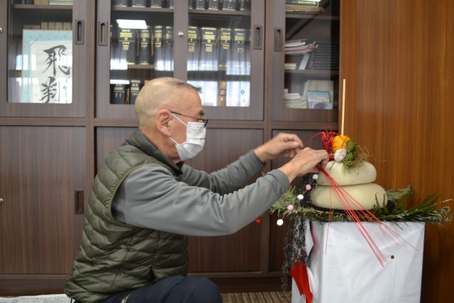 毎年この時期に地域の学校協力者の方が御来校され、新年の風景に欠かせない存在の鏡餅を丁寧に飾ってくださいます。