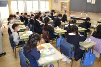 自分の作品でなくても「あ、〇〇さんの作品だ」と笑顔で鑑賞した5年生