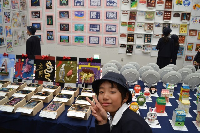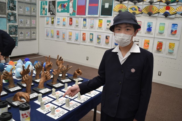 中には中学校の作品で自身の兄姉の作品が展示されていて、友達に紹介している姿も観られました。