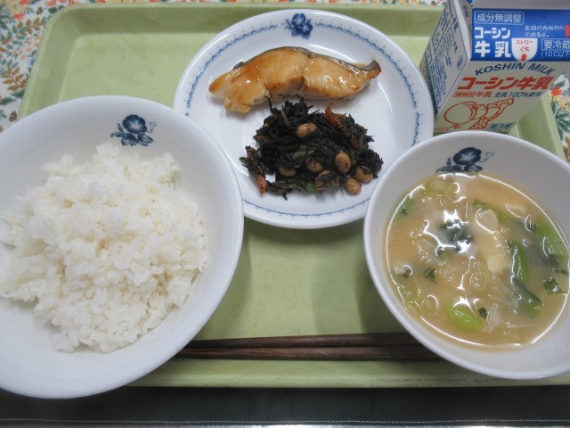 ・牛乳 ・ご飯 ・銀だらの照り焼き ・ひじきの煮物 ・厚揚げとキャベツのみそ汁