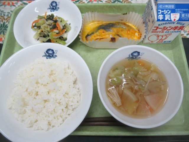 ・牛乳 ・ご飯 ・ぶりのあけぼの焼き ・野菜のよろこんぶ和え ・吉野汁
