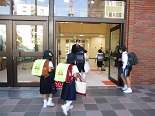 西棟校舎の改修工事終了に伴い、昇降口も変わりました。これからは、1月から使用してきた東門は使用しなくなります。新しい昇降口は、間接照明を取り入れたすばらしい昇降口です。明るい昇降口から、明るくすてきな1日が始まります。