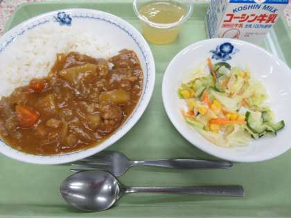 ・牛乳 ・カレーライス ・コーンサラダ ・りんごゼリー