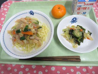 ・牛乳 ・あんかけ焼きそば ・わかめサラダ ・みかん