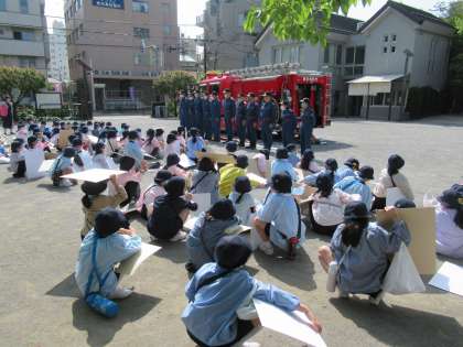 1年生は、消防車を近くで見るというだけでも嬉しそうでした。片付けの時には「楽しかった〜!」という声も聞くことができました。