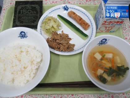 ・牛乳 ・お祝い手巻き寿司 ・手巻き寿司の具(ステックきゅうり、キャベツとたくあん、いかの唐揚げ、豚肉の甘辛煮) ・とうふのすまし汁