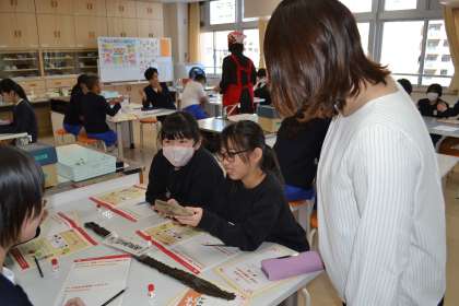 5年生の3クラスが1時間ずつ、家庭科の特別授業を受けました。