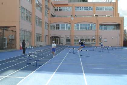 前時に計測したタイムよりもタイムを縮めるために、ハードルの踏切位置や足の使い方など、それぞれが自分なりのめあてをもって練習に取り組みました。