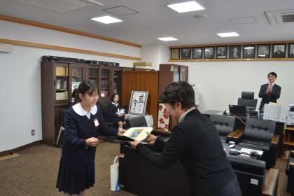 その栄誉を称え本日、上野税務署長さんや上野法人会の皆さんが御来校されました。