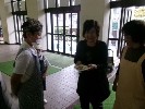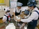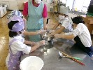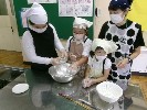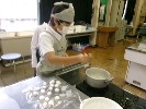 今日はお月見団子を作りました。作り方のコツを教えてくれた栄養士の先生や、日頃お世話になっている先生に出来上がったお団子をプレゼントしました。3種類の味があって、どれも美味しかったです。