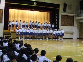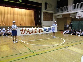各種目の代表児童が明日に向けての抱負を発表し、在校生は応援の気持ちをこめて