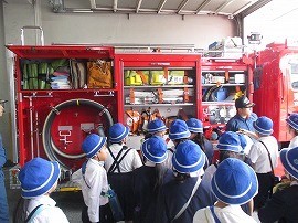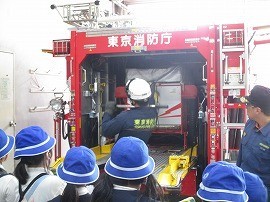 10月7日に消防署見学に行きました。まちを火事から守る仕組みを教科書で学びながら、実際に見てみたいことやもっと詳しく知りたいことを考えて行きました。消防署内では無線の声を聞いたり、消防服の着替えやはしご車のはしごの高さを実際に見たりと、消防署の人の仕事をよく知ることができました。