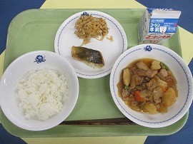 台東区と姉妹都市の宮城県大崎市から送っていただいた新米『ささ結び』を、ごはんに合う和食のおかずと一緒に給食でいただきました。