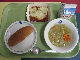 今日は、5年生の合奏曲『オブラディ・オブラダ』にちなんで『イギリス』料理の『コテージパイ』と『スコッチブロス』です。