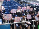 6年生と一緒にデフリンピックを見に行きました。テニスの試合をみました。力強くかっこいいサーブを見てみんな驚いていました。
