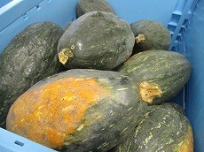 ラグビーボールのような形をした『万次郎かぼちゃ』を使って