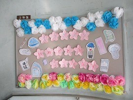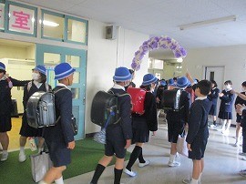 6年生の下校を花のアーチで見送りました。