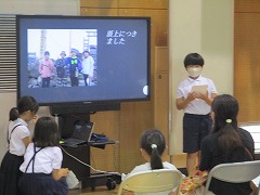 自分たちが霧ヶ峰で撮影した写真をつかって、霧ヶ峰の自然について学んだことを披露したり、この移動教室でも身に付けた自分の力を考えたり、楽しかった思い出について話したりしました。