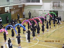 2年生から5年生は6年生への感謝の気持ちを表し、6年生もそれに答えてお礼の歌を披露しました。代表委員会も楽しいクイズを準備しており、大変楽しい会になりました。